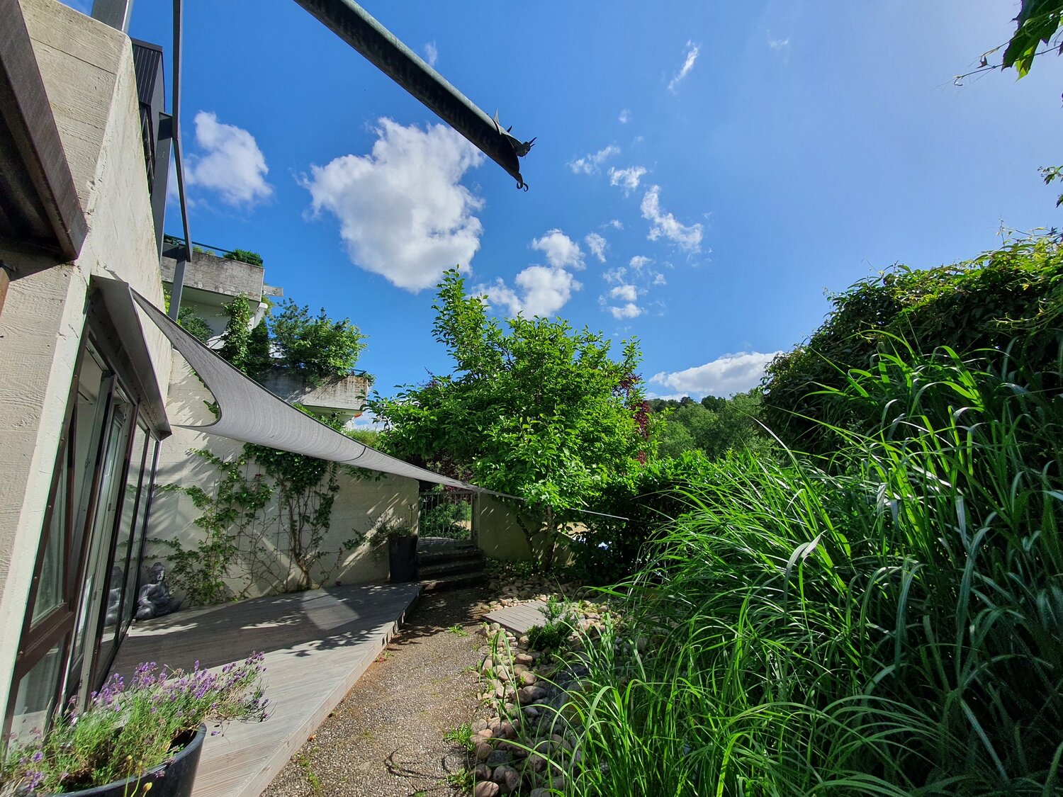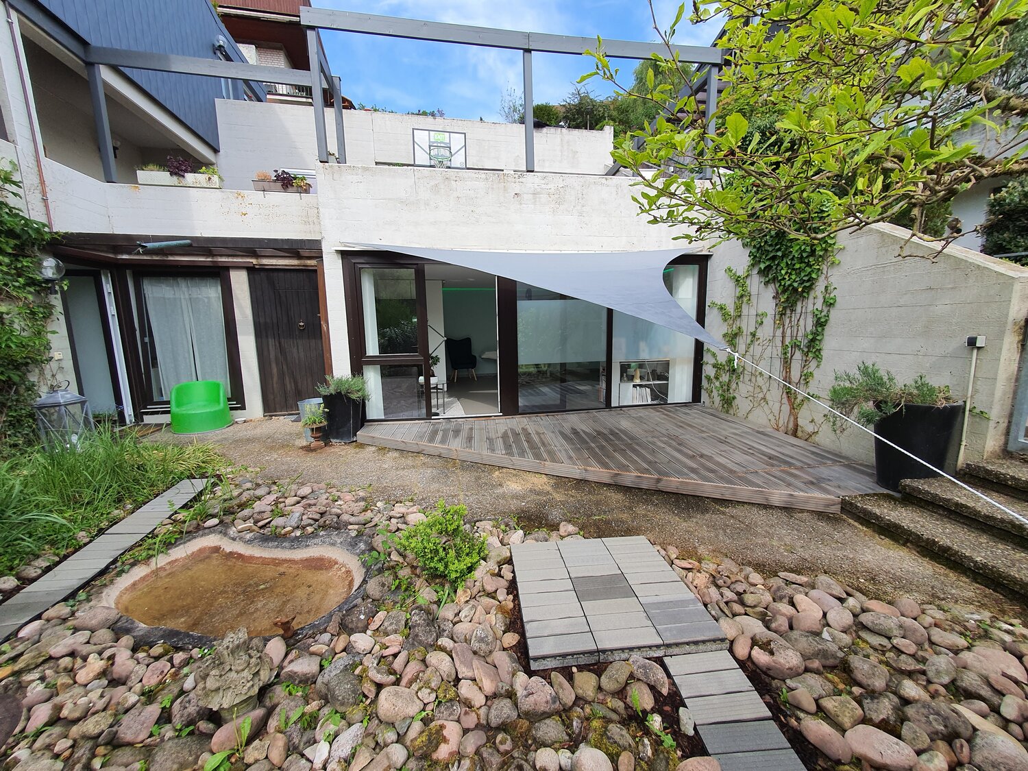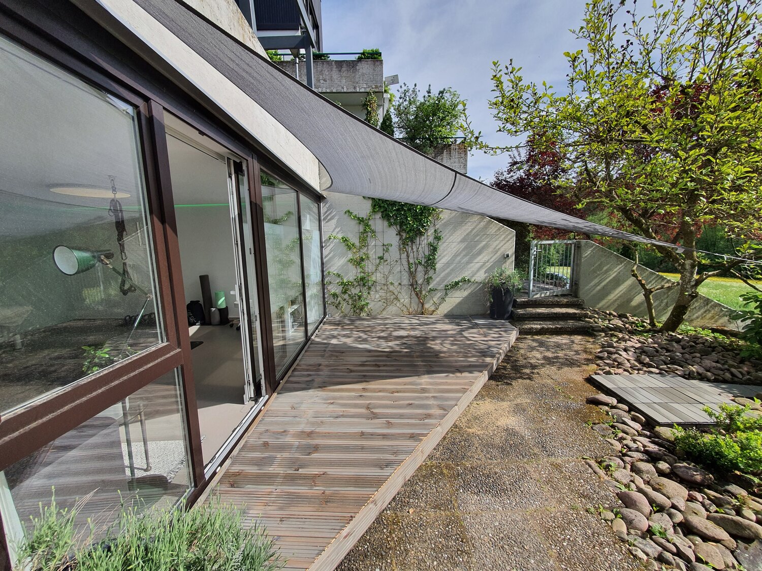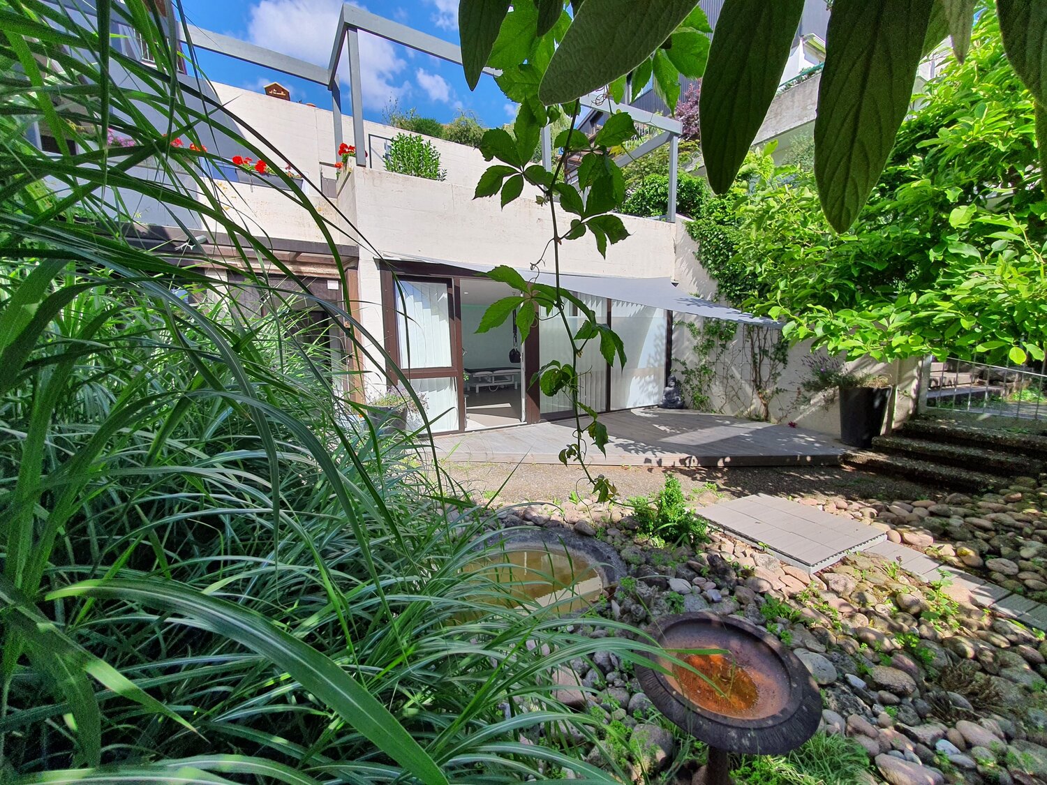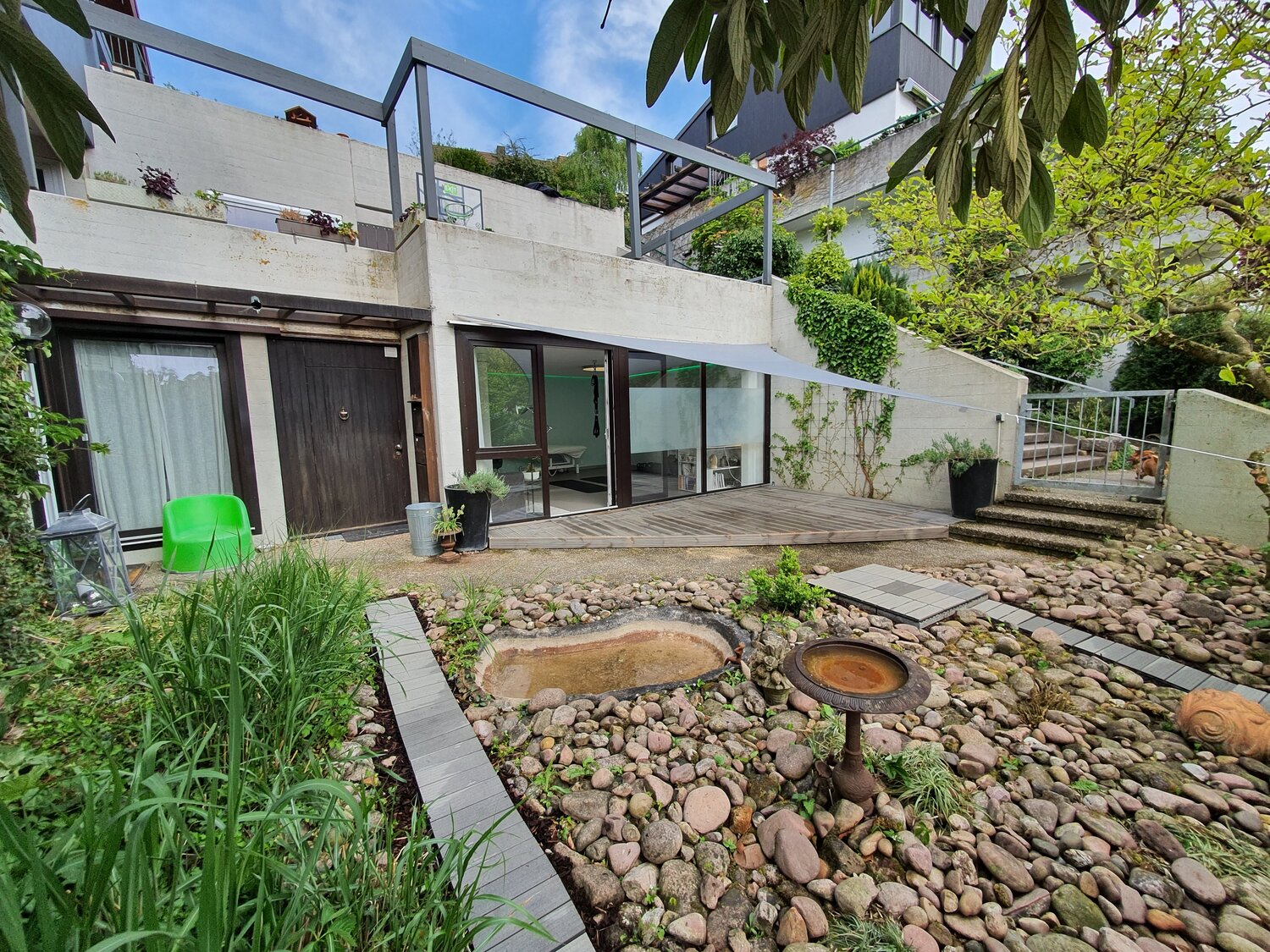 Einfach die Treppen hochlaufen und anschließend gelangt man auf der linken Seite, über das Gartentor, in das Studio.